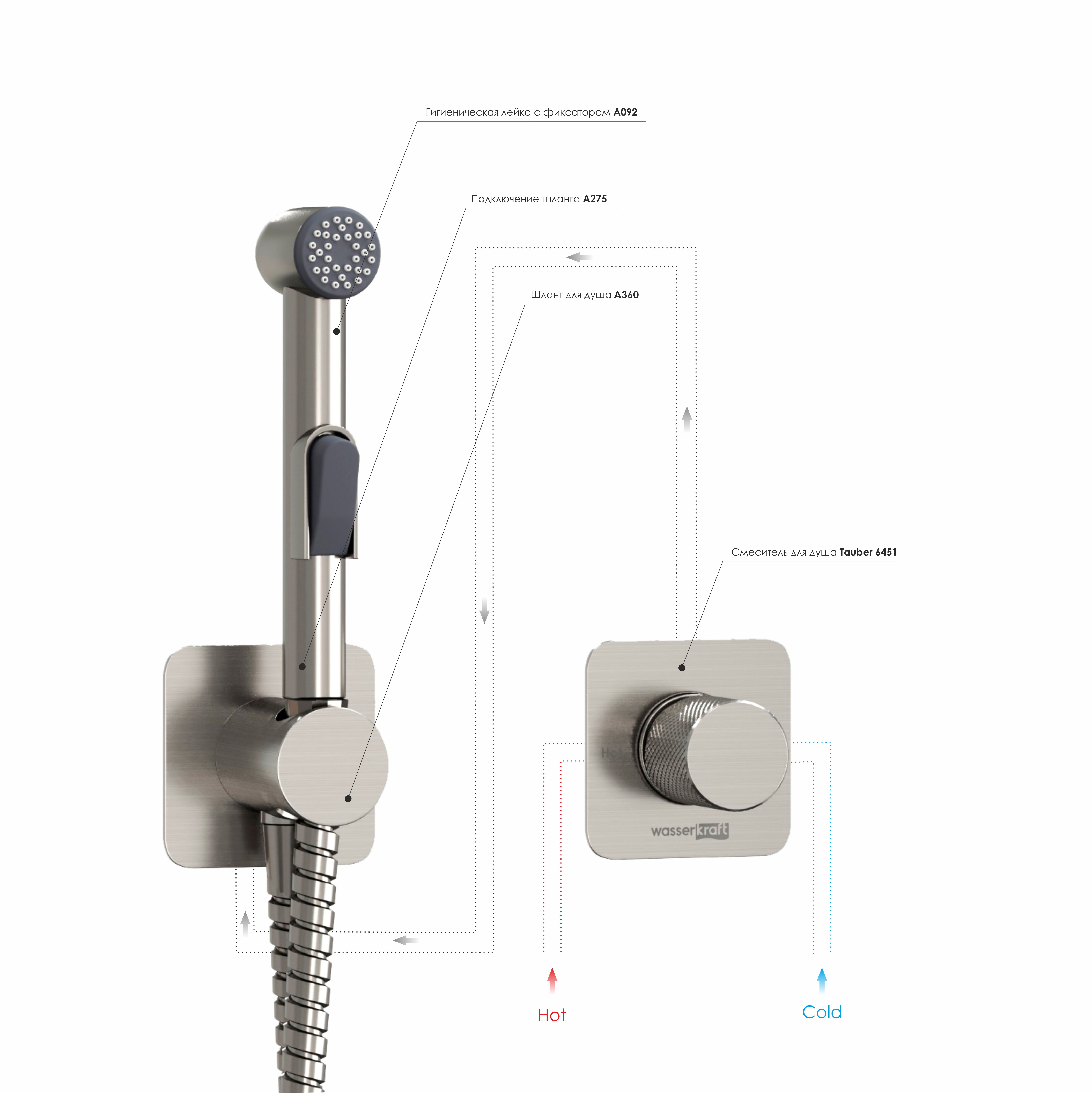 Встраиваемый комплект для биде со шлангом A6451.275.360.092
