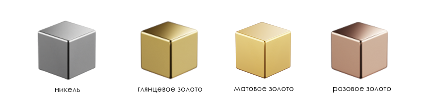 Никель. Покрытие никель создается специальными щетками с алмазными ворсинками, что позволяет добиться эффекта матовой поверхности. После этого на отполированное покрытие наносится лак, который делает покрытие изделия гладким и лощеным. Покрытие никель практичное, на нем вы никогда не увидите высохших разводов от воды.